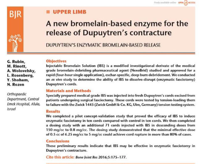מחקר חדש מוצא כי הזרקת מיצוי של גזע שיח האננס למיתר דופויטרן יוכל בעתיד למנוע ניתוח.